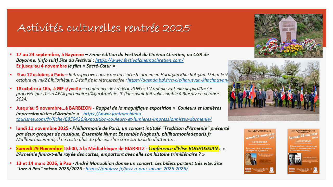 L’Arménie a été récemment mise à l’honneur au Pays basque grâce à l’Association AgurArménie qui depuis bientôt 20 ans fait partager la richesse de la culture arménienne avec le public local.
