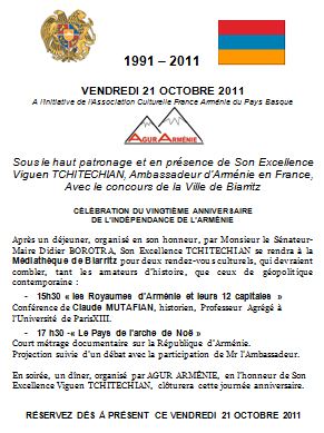 Vingtième Anniversaire de l’Indépendance de l’Arménie
