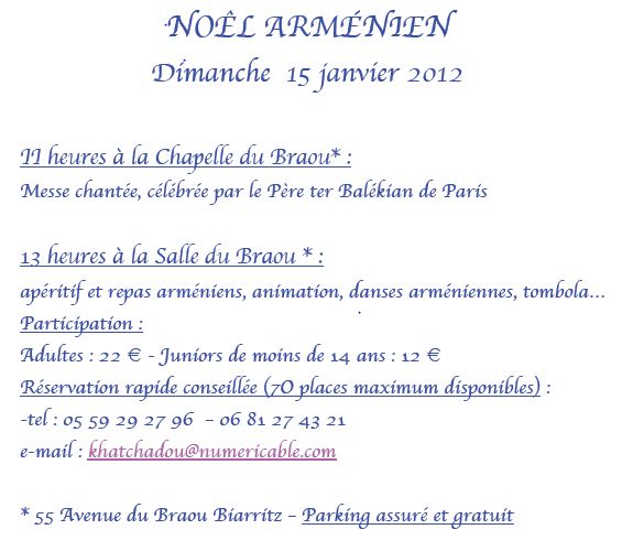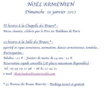 Suivant Article Suivant: Noel Arménien à Biarritz 15/01/2012