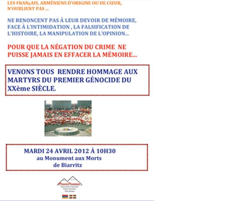 Suivant Article Suivant: Biarritz 24 avril 2012 Commémoration du Génocide des Arméniens
