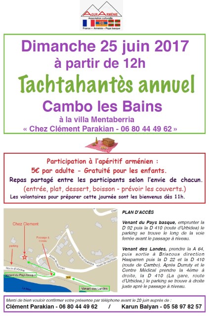 La traditionnelle fête champêtre de notre association AGUR ARMENIE aura lieu