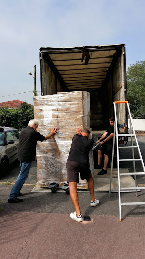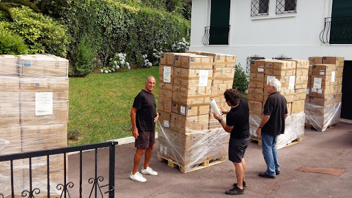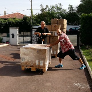 Les vêtements ont été collectés et mis en cartons par Lucie H.R. puis montés sur palettes avec l’aide de Jacques, Serguei et Pierre.