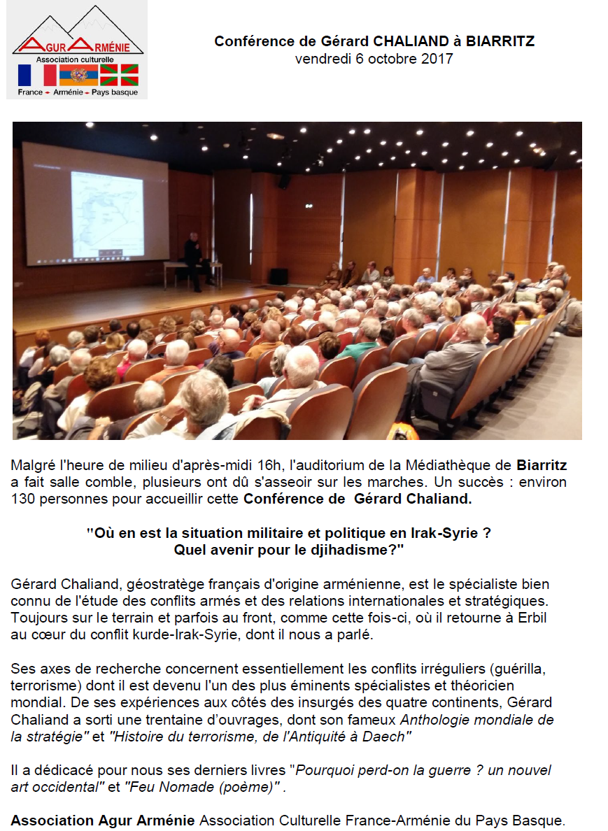 Précédent Article précédent : Conférence de Gérard Chaliand à BIARRITZ – un triomphe !…