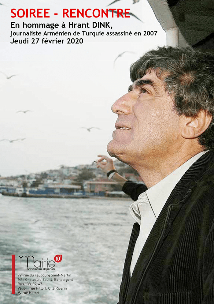 Hommage à Hrant Dink avec Serge Avédikian – jeudi 27.02.2020 à la Mairie du XXè arrondissement de Paris