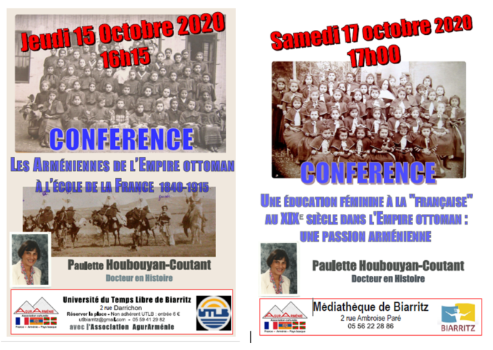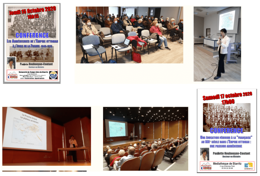 Les jeudi 15 octobre et samedi 17 octobre 2020, notre association AgurArménie a eu le plaisir de recevoir pour deux conférences à Biarritz, Mme Paulette Houbouyan-Coutant, Docteur en Histoire, très engagée dans la coopération scolaire entre la France et l’Arménie