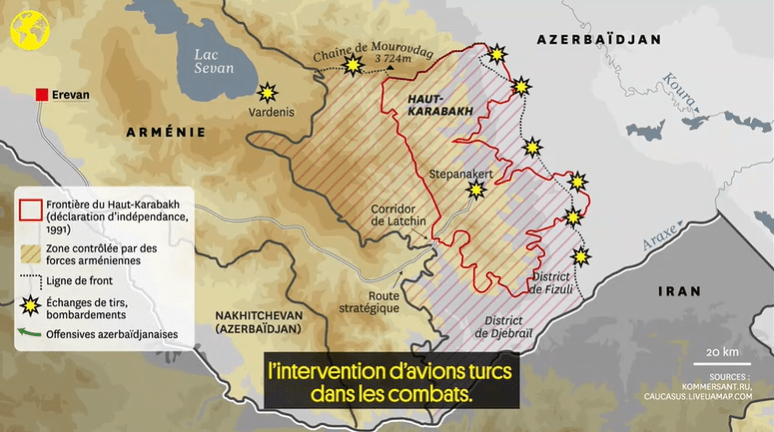 Quand le Premier ministre arménien, le démocrate Nikol Pachinian, récupérait un pays et son armée ruinés par ses prédécesseurs, et tentait depuis 2018 un rapprochement avec l’Europe qui froissait l’orgueil russe, l’Azerbaïdjan préparait savamment son attaque avec un armement dernier cri, illégal, made in Turkey et par un appel d’offre de 100 dollars par tête d’Arménien décapité aux djihadistes turcs, syriens et pakistanais.