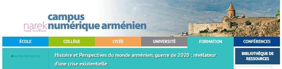 L’association Sources d’Arménie souhaite vous informer de la mise en place d’un cycle de 5 conférences en ligne consacré à la question de l’Artsakh dans le contexte dramatique de la guerre de novembre 2020.