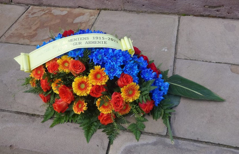 Après le discours du Président d’AgurArménie Clément Parakian rappelant notre combat pour la reconnaissance internationale du génocide en particulier par la Turquie et le discours du Sous-Préfet de Bayonne, au nom du Président Macron, rappelant que la France n’acceptera jamais l’oubli et soutiendra les combats contre la barbarie, plusieurs gerbes ont été déposées.