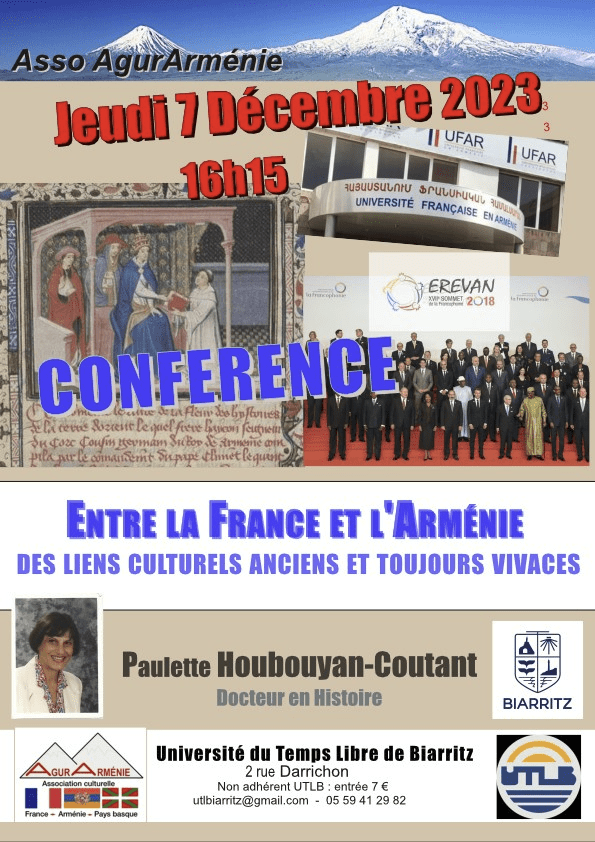 Le Haut-Karabagh ou « Artsakh » en arménien, a subi l’agression de l’Azerbaïdjan. Les plus belles églises et monastères de cette terre, historiquement arménienne, sont désormais sous contrôle azéri. Un patrimoine exceptionnel est en danger. Plus que jamais, l’Arménie a besoin de l’intérêt, de la connaissance mutuelle de cette civilisation, d’hier et d’aujourd’hui, pour sa préservation. La conférence permettra d’en aborder les grandes lignes ainsi que les liens culturels très forts, tissés au fil des siècles, entre la France et l’Arménie.