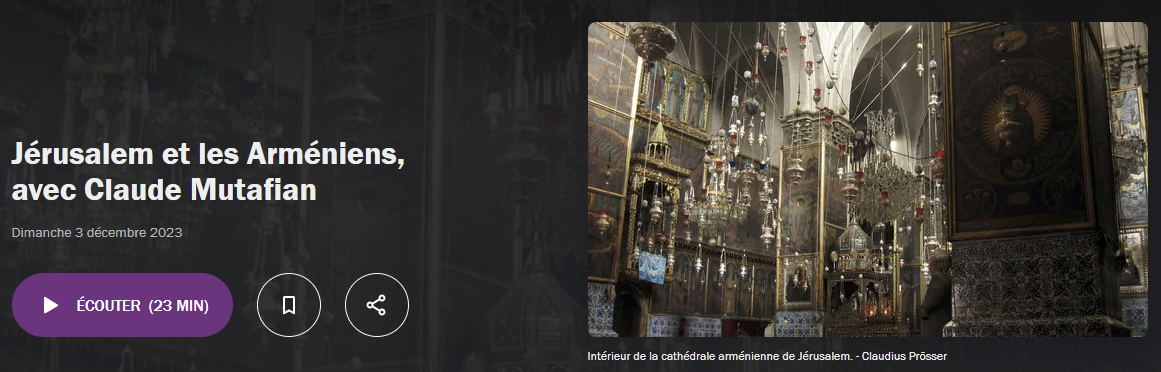 Evocation ce matin en compagnie de son auteur, Claude Mutafian, d’un livre magistral paru aux éditions des Belles Lettres qui retrace la présence millénaire de la communauté arménienne de Jérusalem. Une sujet peu connu.