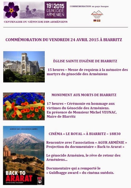 Commémoration du centenaire du génocide au monument aux morts de Biarritz – 24 avril 2015