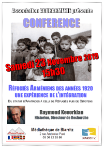 Samedi 23 Nov 2019 – à la médiathèque de Biarritz conférence de Raymond KEVORKIAN