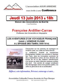 Jeudi 13 Juin 2013 à 18h – Maison des Associations de Biarritz – Conférence de Ardillier-Carras