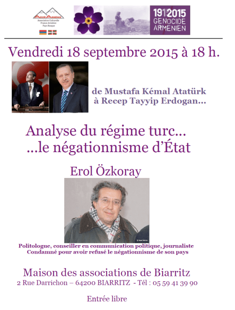 Conférence de Erol Özkoray sur « Analyse du régime turc, le négationisme d’Etat »