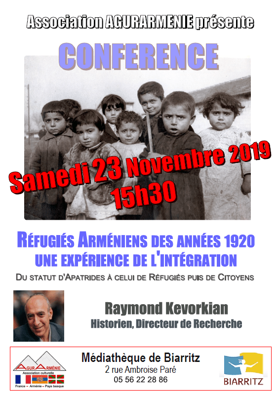 Samedi 23 Nov 2019 – 15h30 – médiathèque de Biarritz conférence de Raymond KEVORKIAN