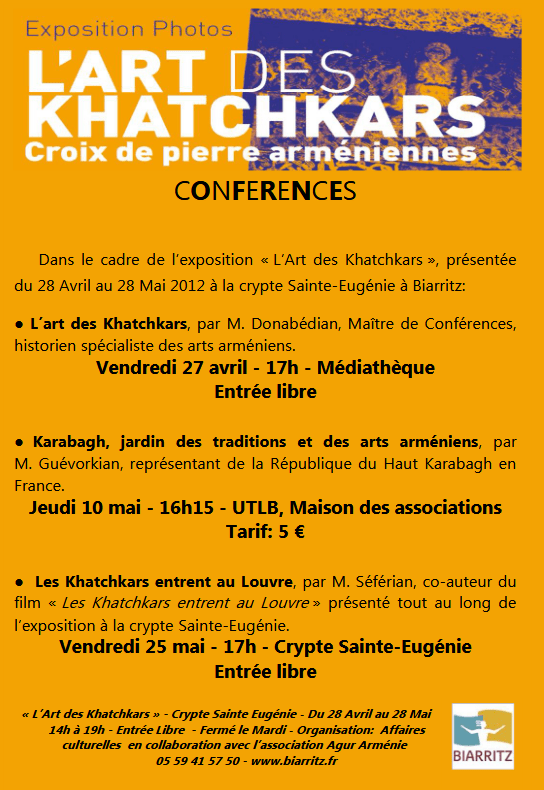 Conférences en Avril 2007 à la Médiathèque de Biarritz organisées par l’association AgurArménie sous l’impulsion de Nelly Tardivier, commissaire général de « l’Année de l’Arménie en France«