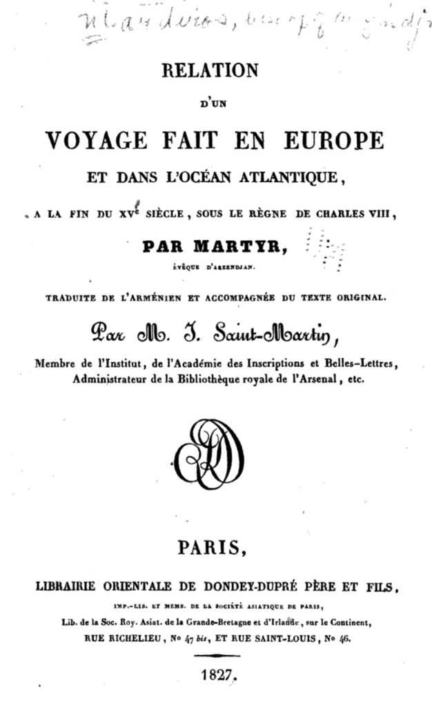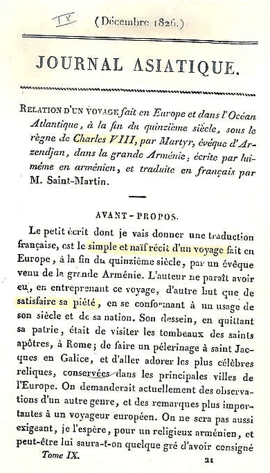 En témoigne un manuscrit arménien se trouvant au Cabinet des Manuscrits orientaux de la BnF lien BnF, manuscrit publiée dans un article de la revue Journal asiatique, (Paris, IX, Décembre 1826, pp.321-373) lien journal