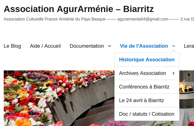 Association Culturelle France Arménie du Pays Basque ——- agurarmenie64@gmail.com ——- 2 rue Darrichon, 64200 Biarritz, Nouvelle-Aquitaine, France