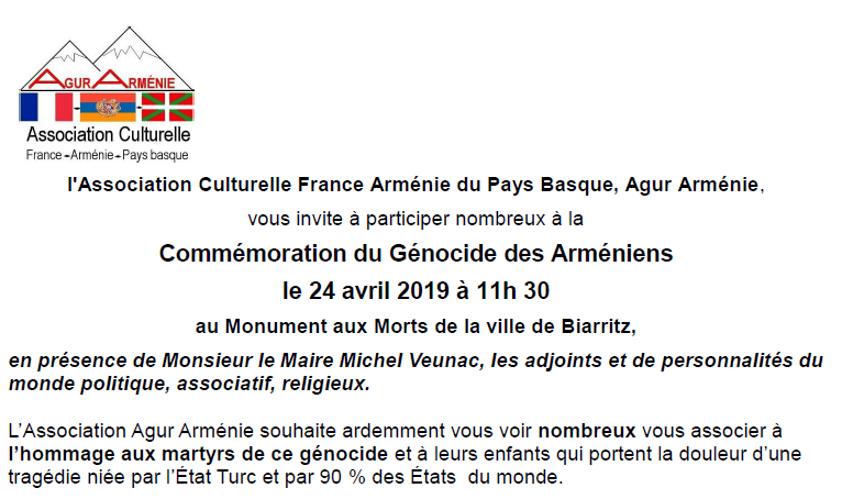 Association Culturelle France Arménie du Pays Basque ——- agurarmenie64@gmail.com ——- 2 rue Darrichon, 64200 Biarritz, Nouvelle-Aquitaine, France